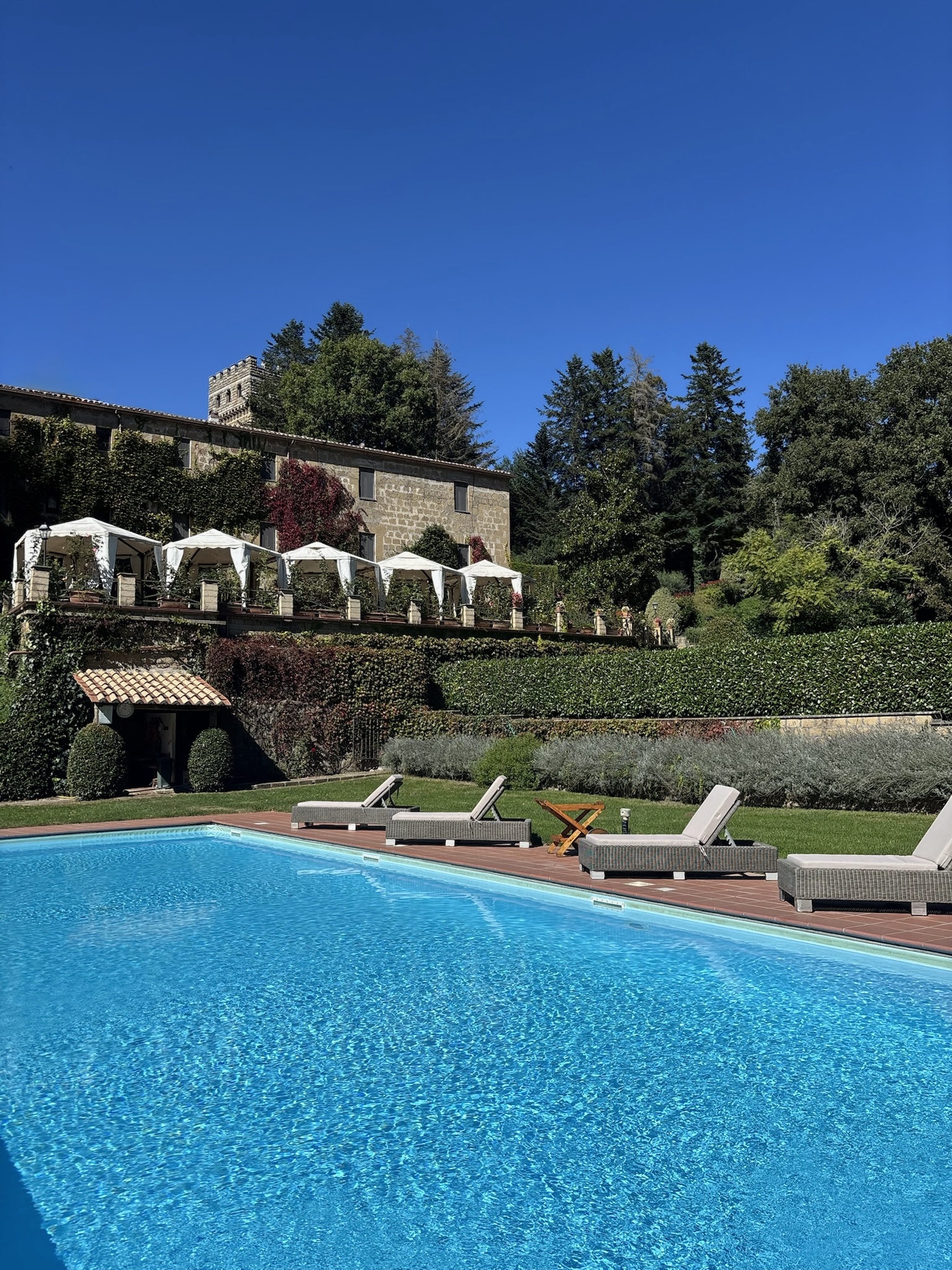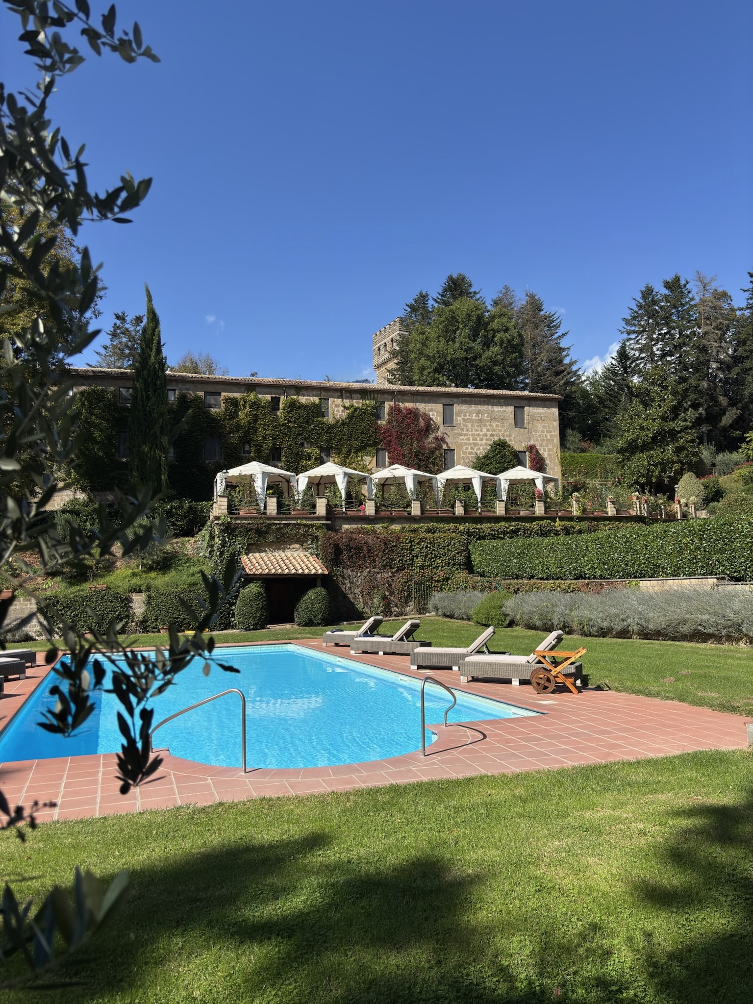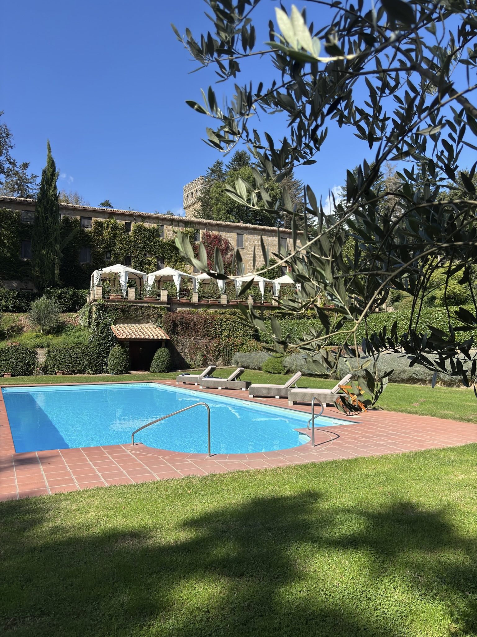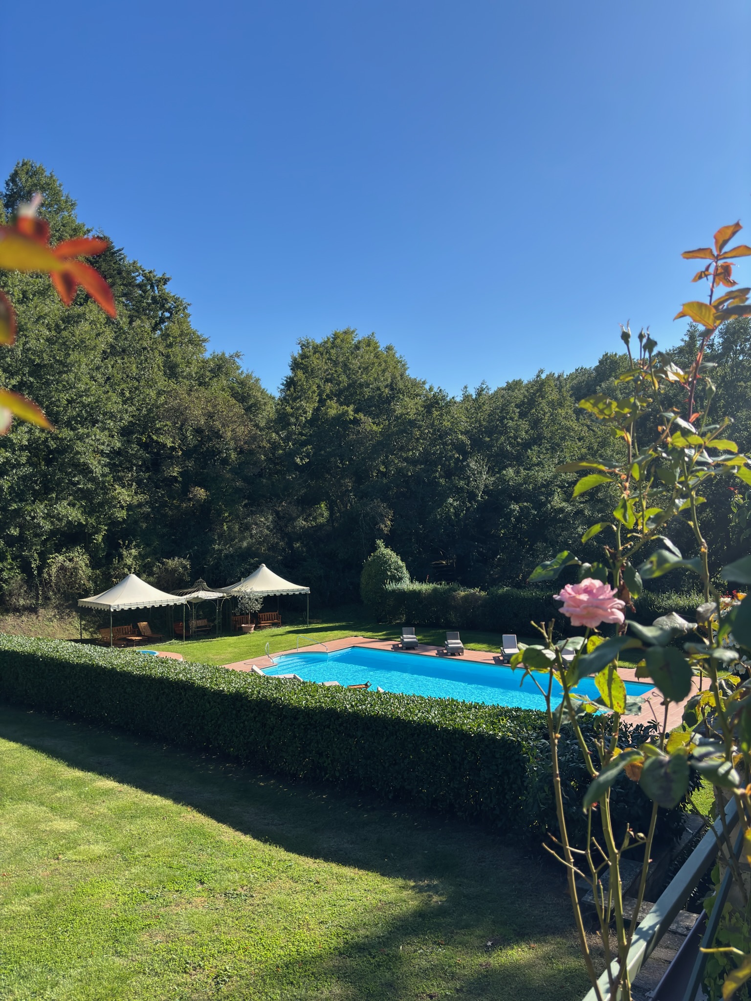 La tenuta dispone di una grande piscina panoramica circondata da lettini, perfetta per rilassarsi al sole nelle giornate estive. Accanto si trova una piscina più piccola dedicata ai bambini.